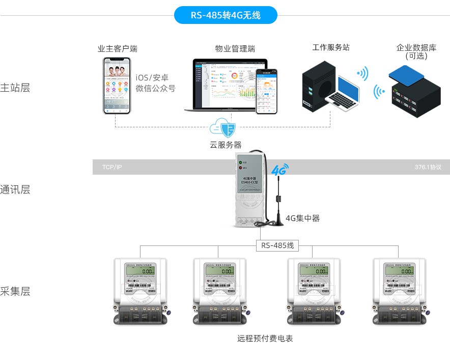 RS-485集中抄表一台RS-485集中器可管理32台电表